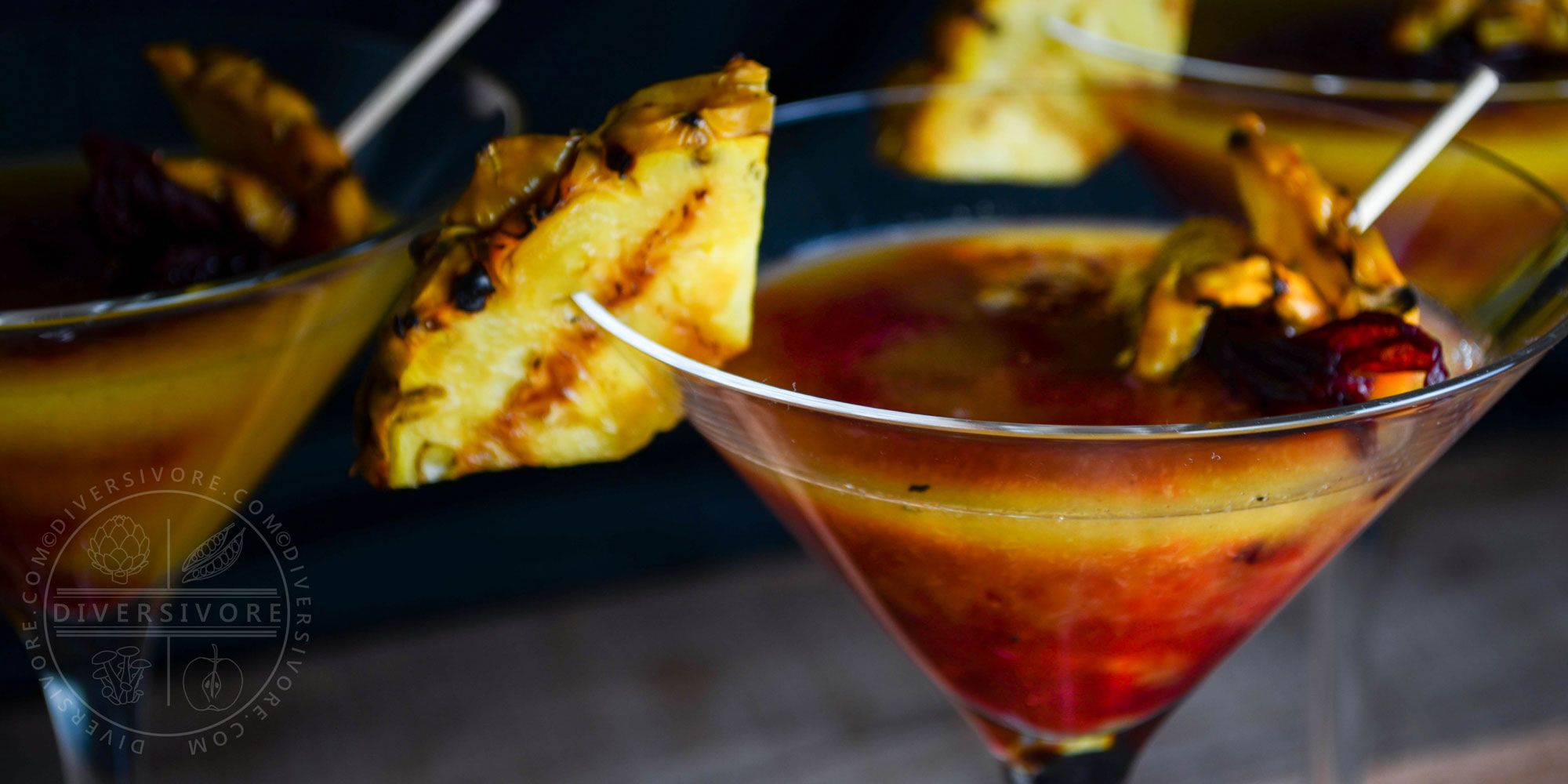 Se pica la piña y se pone a calentar hasta tostar, es recomendable que sea a la parrilla para obtener un mejor sabor, en un recipiente se hecha la piña con el chile cortado en rodajas, se le hecha el cilantro y el limon despues se machaca, en un vaso con hielo, se bacea el mezcal al gusto y otro poco de limon junto con la miel de agave y la mezcal anterior.